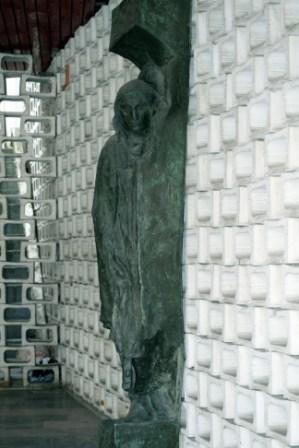 Čelný pohľad na bronzovú plastiku v objekte národnej galérie